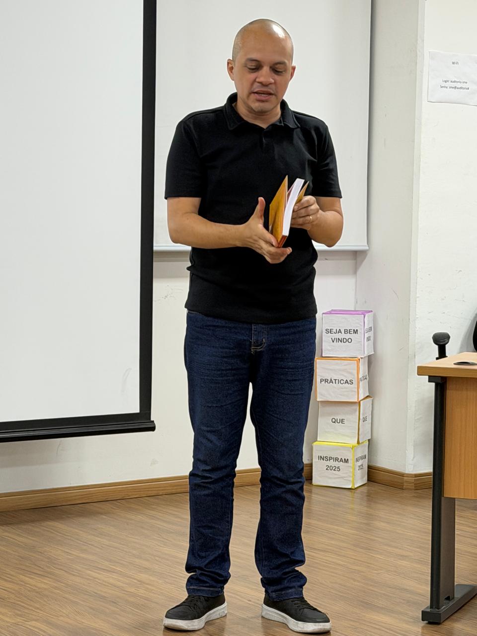 Entre os pontos centrais da formação, ganhou destaque a importância de um investimento sólido em Libras. Reconhecida como língua primeira da pessoa surda, ela sustenta a compreensão do português como segunda língua e abre caminhos para uma aprendizagem mais justa, segura e coerente. “Fortalecer a Língua de Sinais significa garantir equidade e ampliar possibilidades comunicativas dentro e fora da sala de aula”, disse Odirlei Faria, Pedagogo, especialista em Libras e em Educação para Surdos, que trouxe o tema do encontro. Odirlei tem uma trajetória marcada pela formação de educadores, pela produção de materiais pedagógicos e pelo fortalecimento da acessibilidade linguística.
