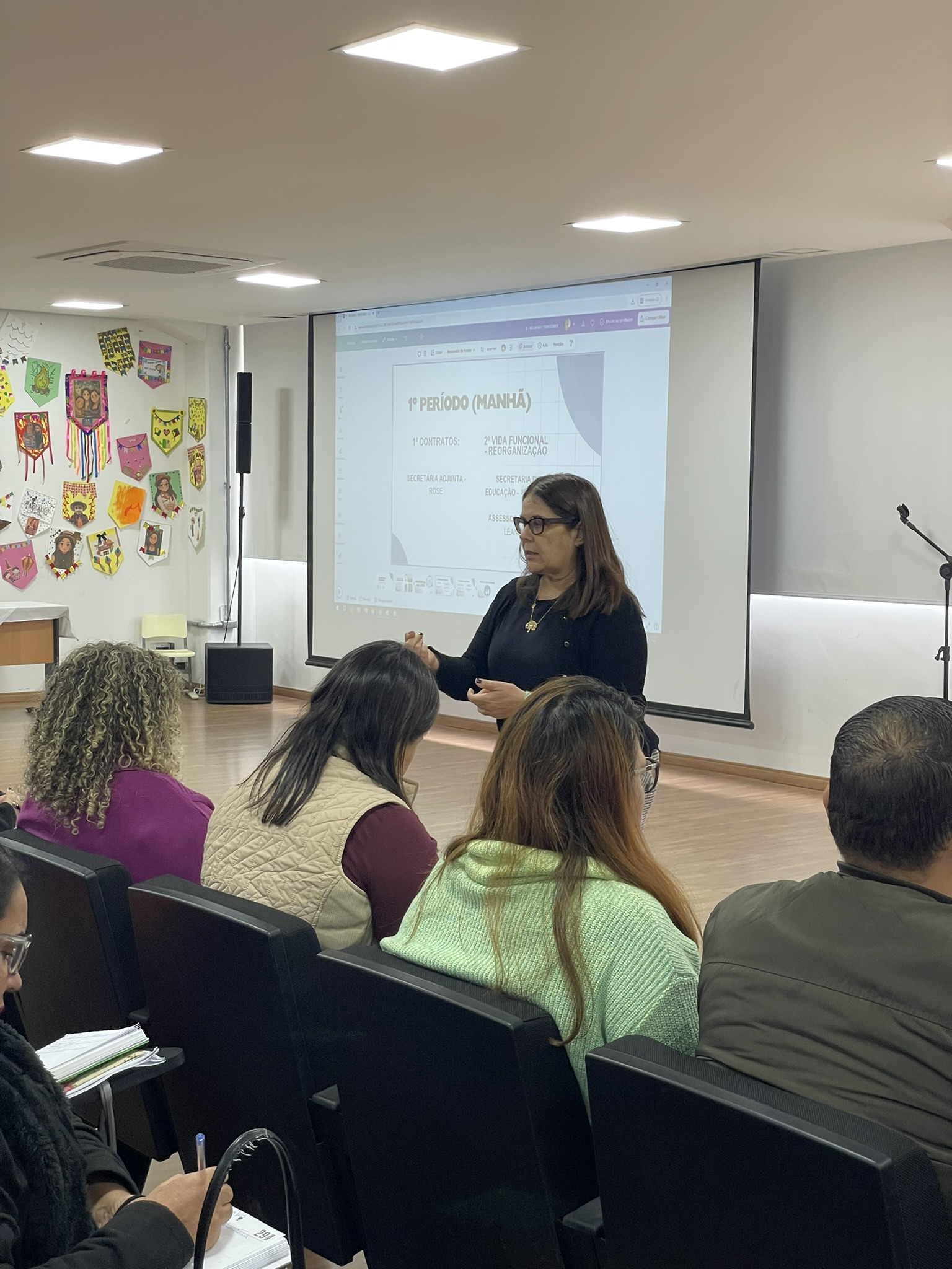 Nos encontros com os gestores escolares, também foram abordados temas, como: contratos com empresas terceirizadas, gestão responsável da verba do PDDE e orientações para a APM, além da apresentação de novidades que serão implementadas ainda neste semestre, com foco especial no planejamento para 2026.