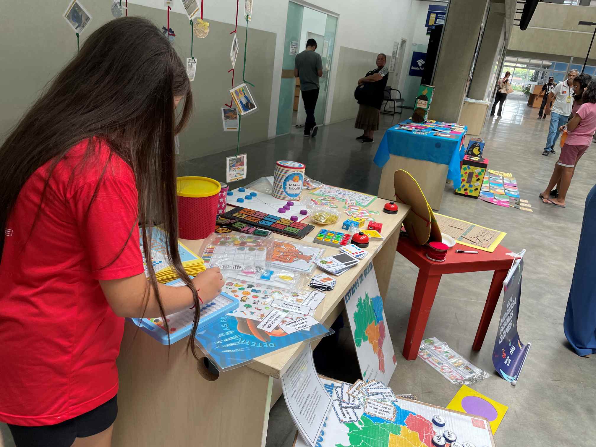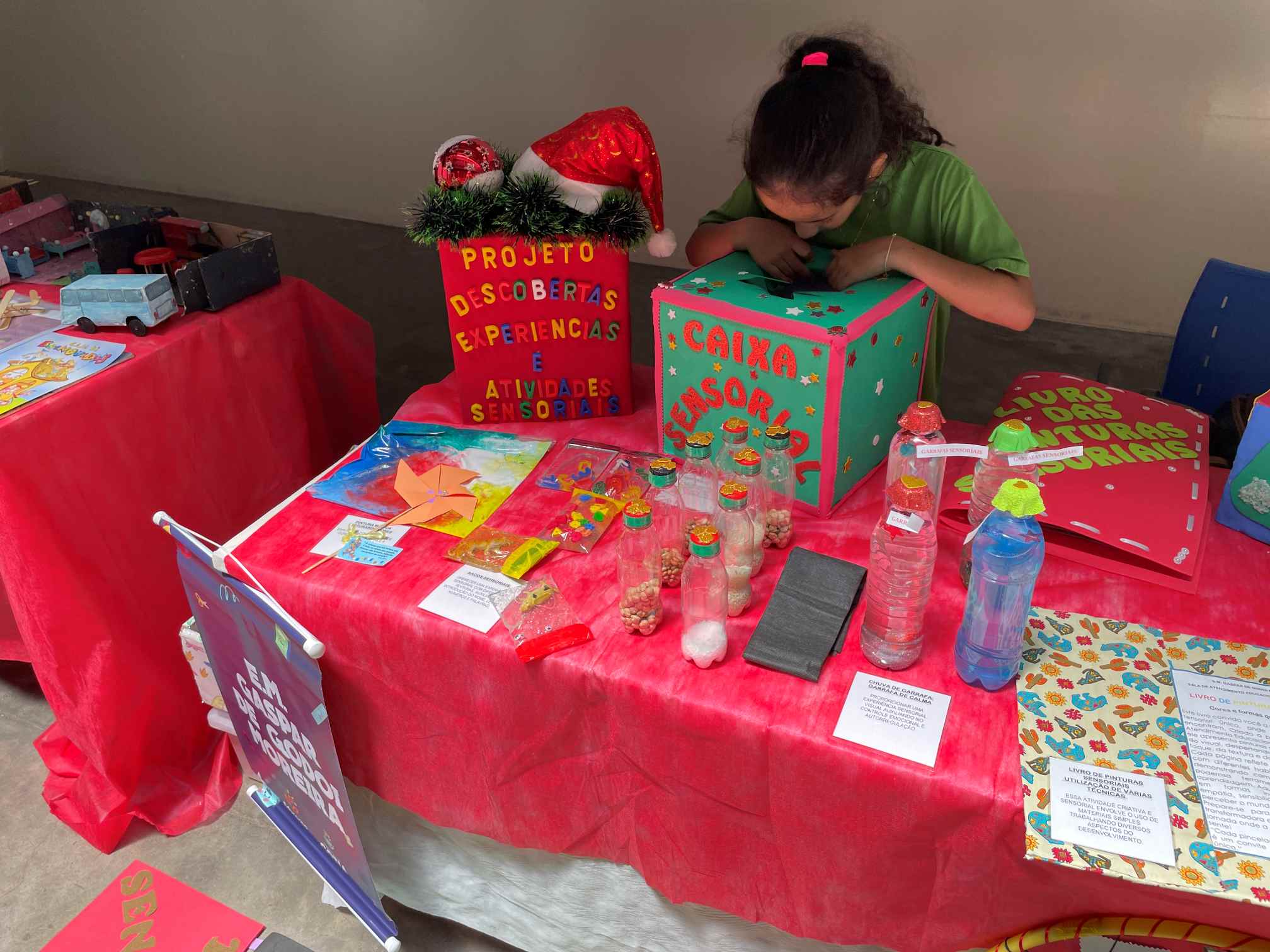 Outros temas também foram instalados na Mostra: Jogos e Brincadeiras; Identidade e Memórias Afetivas; Descobertas, Experiências e Atividades Sensoriais; Jardim Sensorial; Musicalização; Canções Infantis; Arte em Tela: Colorindo a Vida; LEGO Braille Bricks Cotia; entre diversos outros. “Temos o intuito de trabalhar todos os aspectos cognitivos que envolvem o desenvolvimento da criança”, pontua Mônica Amorim, professora da E.M Andressa Soares Gomes, responsável pelo projeto ‘Jogos e Brincadeiras’.