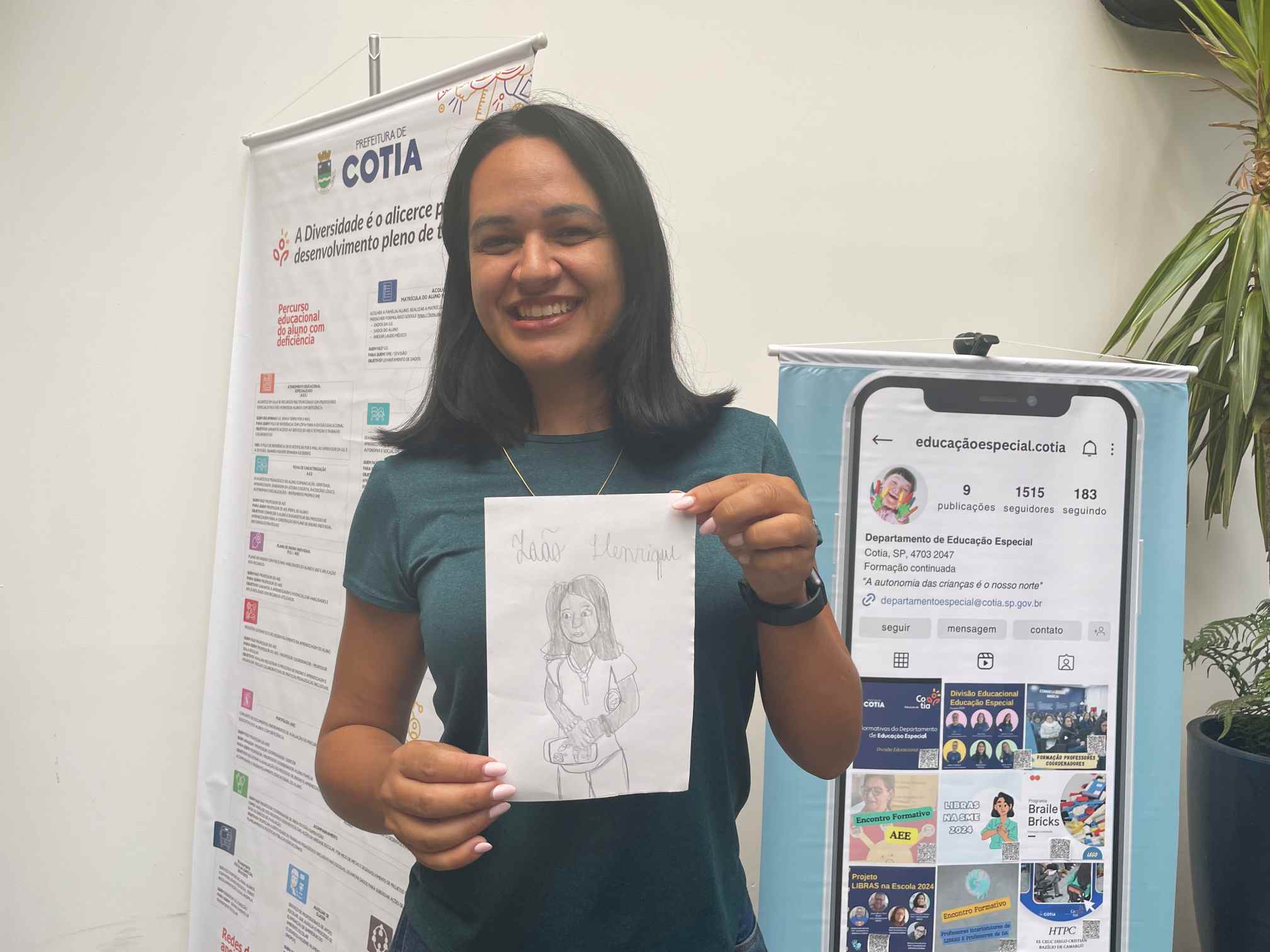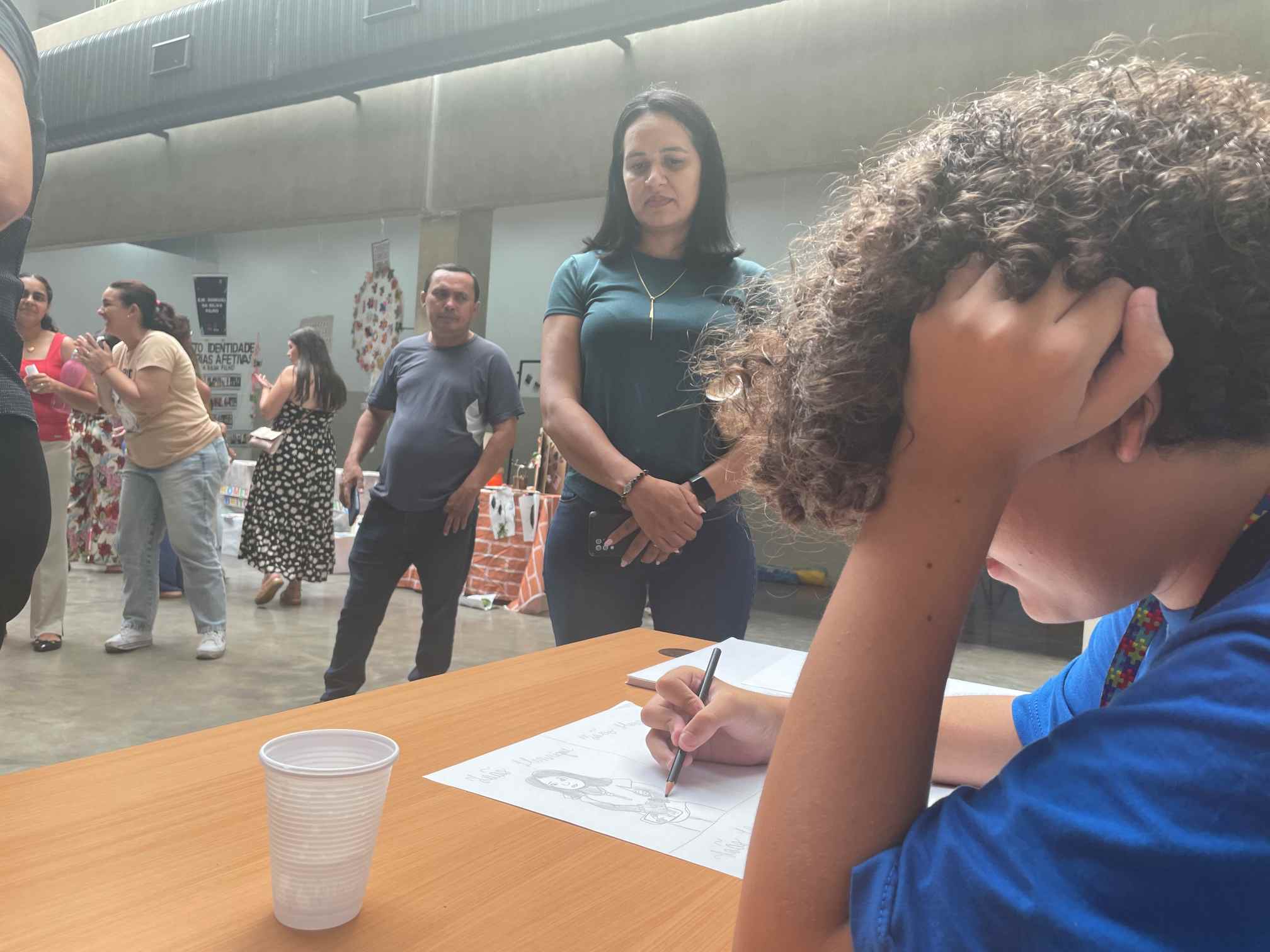 O João Henrique (@artes_dojo), aluno da E.M Samuel da Silva Filho, encantou desenhando o público presente. “Cada um tem um jeito diferente, e o jeito dele [do João Henrique] de se expressar quando ele está triste, quando ele está contente é pelo desenho. O desenho é tudo para ele, e nós [os familiares] sentimos que ele evoluiu muito pela arte e pelos atendimentos no AEE, na comunicação em casa e com outras crianças”, disse Flávia Souza, mãe do artista João.