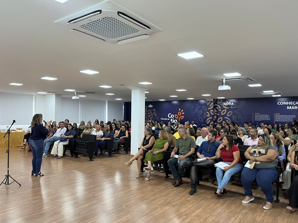 Os diretores de todas as escolas municipais de Cotia participaram da reunião que contou com a presença do prefeito Welington Formiga